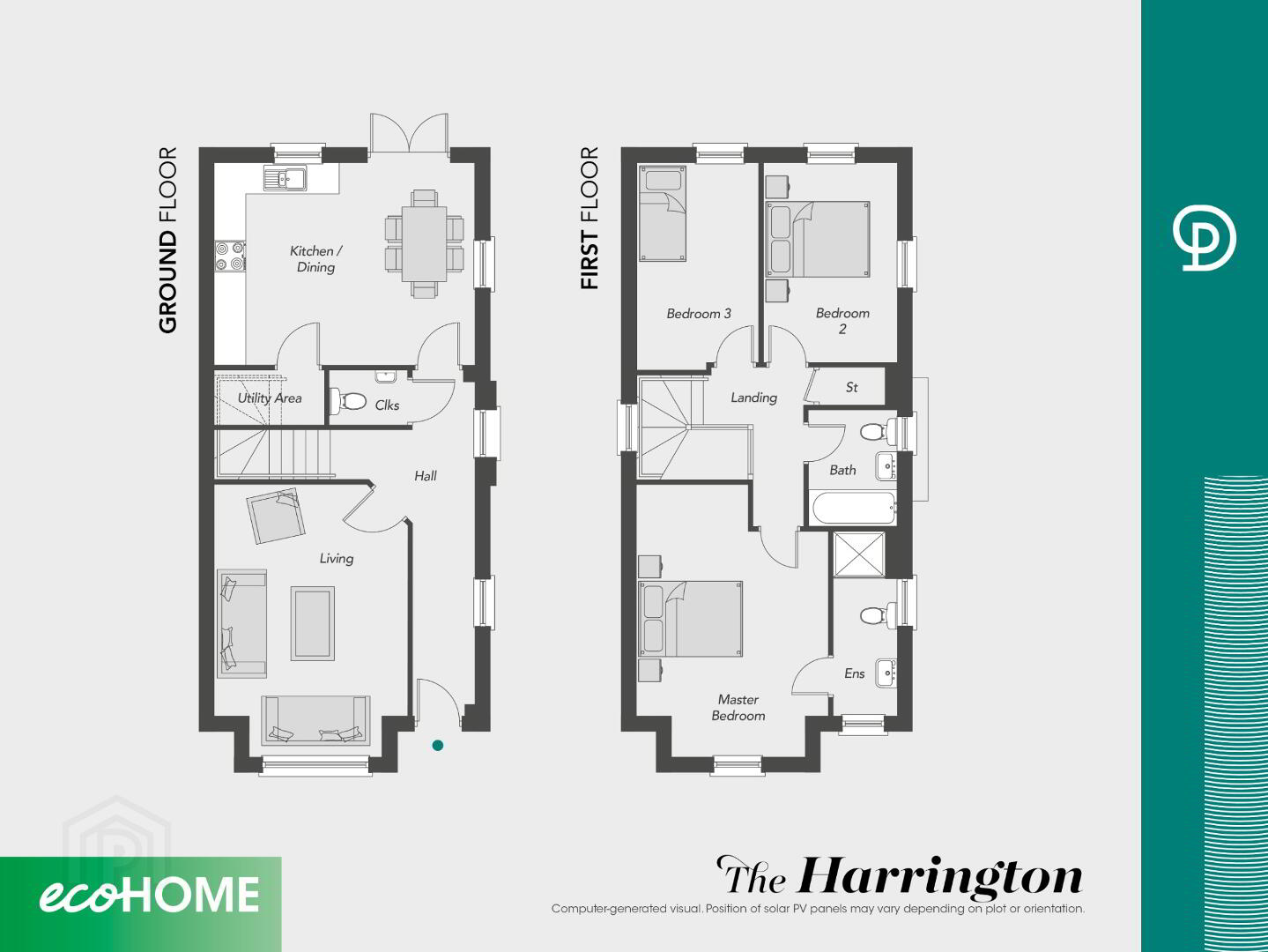 All dimensions are approximate and 3D computer generated images are for illustration purposes only, position of solar PV panels may vary depending on plot or orientation, both of which may be subject to change.